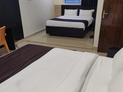 The room is fully air-conditioned and equipped with two double beds in a large environment. A lavish accommodation, the Deluxe Family Room comes with wooden furnishing and exudes a rustic feel. With a queen-size bed at your disposal coupled with all modern amenities, your stay in kanchipuram cannot get any better!